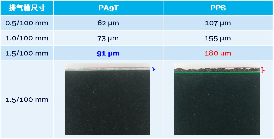 Genestar™(PA9T)凝固速度快,有助于减少成型过程中的飞边产生。通过降低去飞边工序负担,可实现更短的成型周期、更高的生产效率以及更低的加工成本。